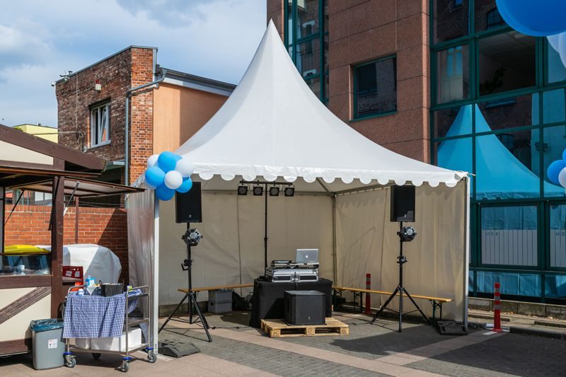 - Aufbau Outdoor, Pagodenzelt 5x5m und Palette wurde gestellt